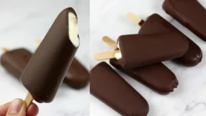 गर्मियों में आइसक्रीम एक लोकप्रिय ट्रीट है, लेकिन बाजार में मिलने वाली आइसक्रीम अक्सर स्वास्थ्य के लिए हानिकारक होती है। इसलिए, परिवार की सेहत का ध्यान रखते हुए, घर पर चॉकलेट बार आइसक्रीम बनाना एक बेहतर विकल्प है। यह न केवल स्वादिष्ट है, बल्कि पौष्टिक भी है। इसे बनाने के लिए हमें चाहिए: 1 कप मखाना, ½ कप बादाम (भिगोए हुए), 4 चम्मच शहद, 1 कप दूध पाउडर, 1 गिलास दूध, 4-5 बूँदें वैनिला एसेंस, 200 ग्राम डार्क चॉकलेट और 4 चम्मच नारियल का तेल। सबसे पहले, मखाना और बादाम को दूध में 20 मिनट तक भिगोएँ। फिर इसे मिक्सर में डालकर अच्छे से पीस लें। इसमें दूध पाउडर, शहद और वैनिला एसेंस डालकर फिर से अच्छे से मिलाएँ। इस मिश्रण को आइसक्रीम मोल्ड में डालें, स्टिक डालें और 12 घंटे के लिए फ्रीज करें। डार्क चॉकलेट और नारियल का तेल को एक साथ गरम करें और आइसक्रीम को उसमें डिप करके वापस फ्रीज करें। इस आइसक्रीम में कोई कैमिकल नहीं हैं और इसके सभी सामग्री पौष्टिक हैं जैसे मखाना प्रोटीन और कैल्शियम से भरपूर होते हैं, बादाम मस्तिष्क के लिए फायदेमंद होते हैं, और डार्क चॉकलेट एंटीऑक्सीडेंट्स का स्रोत होती है।