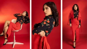 भुमि पेडनेकर ने अपने नवीनतम लुक से इंटरनेट को गर्म कर दिया है। उन्होंने एक बोल्ड काले फूलों वाली बॉडीसूट, ऊँची लाल स्कर्ट और हील्स पहनी है।