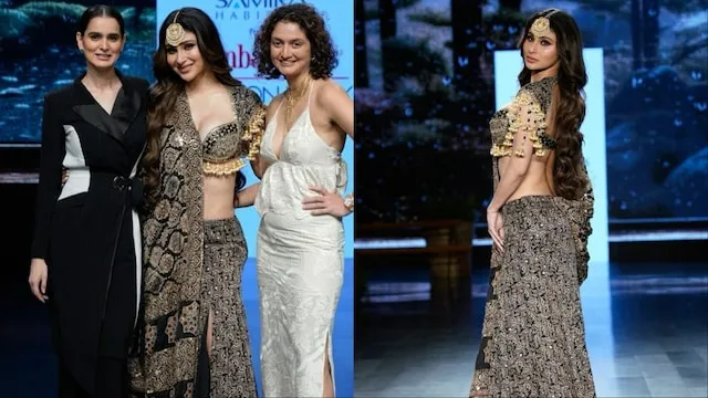 उन्होंने काले और सुनहरे अज्रख लहंगे में सबका ध्यान खींचा। उनकी यह लहंगा सेट अद्वितीय थी और मौनी ने आत्मविश्वास से रैंप पर चलकर हर क्षण को जीया। लहंगे का स्कर्ट पारंपरिक रंगों और सुनहरे किनारे से सजा था, जिसे एक खूबसूरत अक्षय ब्लाउज के साथ जोड़ा गया था। उनके साहसी लुक के साथ, उन्होंने एक सुनहरे मांगटीका और मेकअप के साथ अपने लुक को पूरा किया।